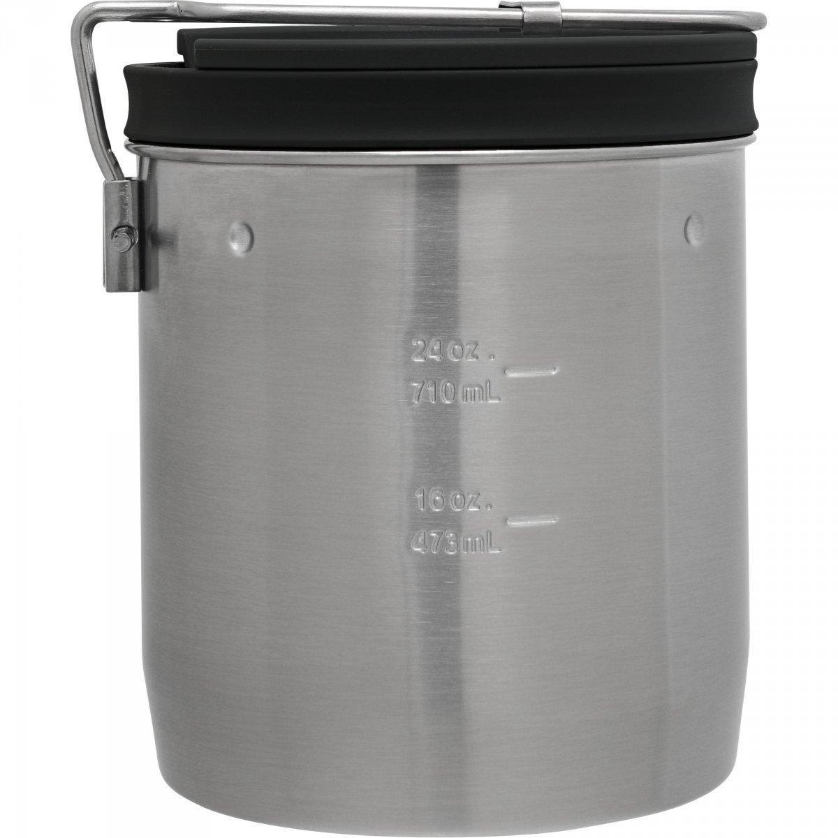 Menażka wyposażona jest w składaną, blokowana rączkę, która ułatwia jej używanie na ogniu.