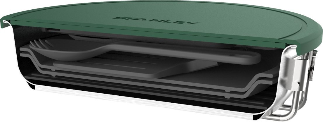 Zestaw kempingowy Stanley Adventure to przemyślany komplet naczyń i akcesoriów, zaprojektowany z myślą o wygodzie gotowania na świeżym powietrzu. Wykonany z stali nierdzewnej 18/8, oferuje trwałość, odporność na korozję oraz łatwość czyszczenia. W skład 9-elementowego zestawu wchodzi patelnia o pojemności 0,95 l (średnica 18,4 cm) ze składaną rączką oraz komplet przydatnych akcesoriów, które można kompaktowo przechować wewnątrz patelni.