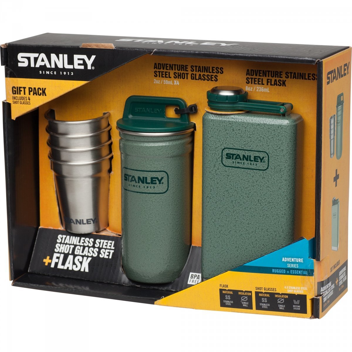 Zestaw kieliszków stalowych z piersiówką ADVENTURE - zielony / Stanley